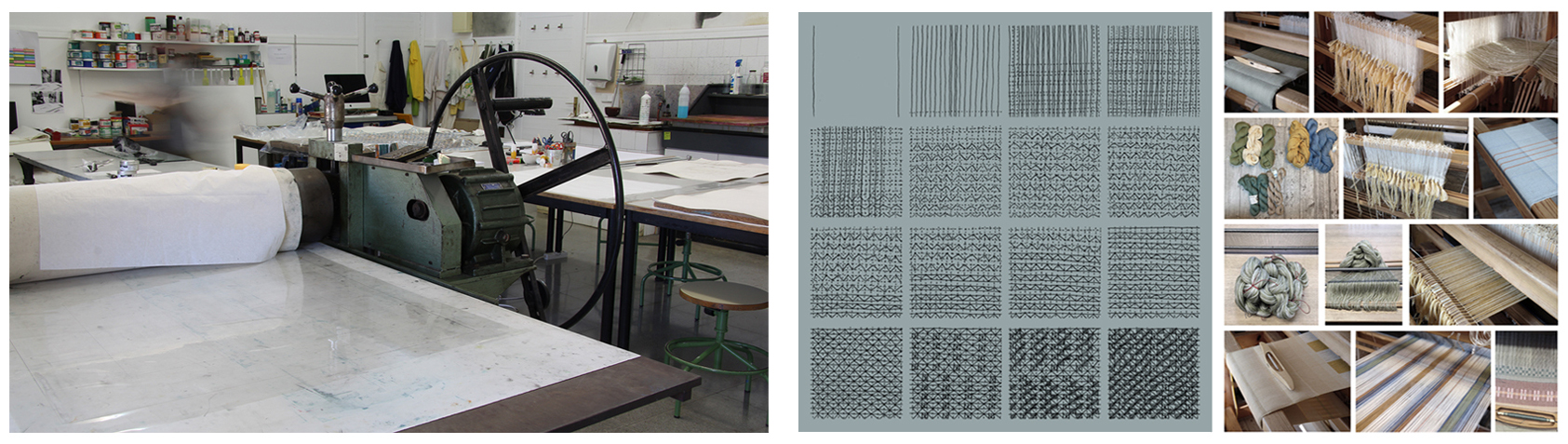 Following the silent movements of the hands of Filomela, it is proposed to reinterpret different techniques of weaving to take them to the engraving technique. Moving forward and building a plot, a story. Because it was first woven before writing. Or maybe, better said, it was writing weaving.